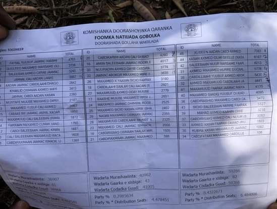 Magacyadda Xildhibaanadda Golaha Wakiiladda Gobolka Togdheer Oo La Shaaciyay.